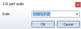 The scale can be selected from a selection box in the corresponding HiCAD function dialogues. In addition, in many cases it is also possible to enter a scale directly. The scales available in the selection boxes of the HiCAD functions are defined in the file szene-massstab.txt in the HiCAD subdirectory makro2d for 2D parts. Please note that HiCAD supports the European scale logic by default, i.e. scale specifications in the form n:m, e.g. 1:1, 1:10, 5:1 etc