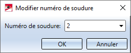 Modification manuelle du numéro de soudure. Entrez le nouveau numéro de soudure puis quittez la fenêtre de dialogue en cliquant sur OK.