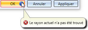 - Quittez la fenêtre par OK. Les modifications seront corrigées si possible immédiatement. Si aucun rayon avec la valeur indiquée n'est trouvé ou si modifier les rayons n'a pas été possible, apparaît alors sur le bouton OK le symbole