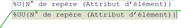 Si vous souhaitez utiliser les attributs de l'élément supérieur lors de l'annotation d'un élément, vous pouvez faire précéder l'attribut de la chaîne de caractères %U. La lettre U peut également être répétée afin d'utiliser les attributs encore plus hauts dans la structure d'éléments :