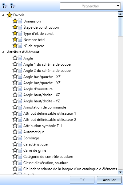 . Les attributs identifiés de la sorte seront intégrés dans la fenêtre de sélection sous Favoris.