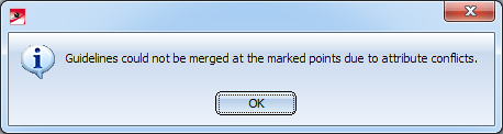 It could also be the case that guidelines cannot be merged due to the attributes assigned to them, e.g. if nominal diameter and isolation do not match. In this case the following message will be displayed: