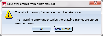 The taking over of the list is only successful if a corresponding entry exists in the ISD Configuration Editor at Drawing frames. If this is not the case, e.g. because an older configuration is being used after an update, the following message appears: