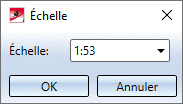 Vous pouvez encore ajuster ici l'échelle. En quittant la fenêtre par OK, l'échelle de la scène sera alors ajustée avant insertion du cadre de dessin. En quittant la fenêtre par Annuler, c'est alors l'échelle alors indiquée qui sera utilisée.