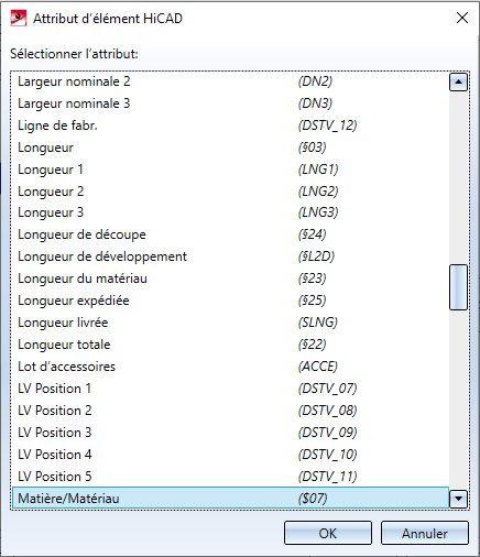 Sélectionnez l'attribut de votre choix, et quittez la fenêtre par OK.
