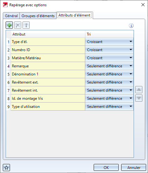 Vous déterminez ici quels attributs d'élément devront être pris en compte lors de la recherche d'éléments identiques et lors du repérage (positionnement).