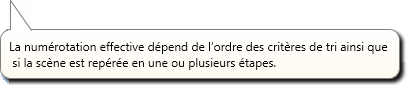 Le tri se réfère toujours à une seule exécution de repérage. Cela signifie notamment que le tri ne sera véritablement chronologique que si la scène complète est repérée.