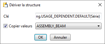 Le nom DEFAULT(Série) vous est proposé. Si vous voulez appliquer le réglage d'une configuration déjà présente, ex. ASSEMBLY_BEAM, cochez alors la case Copier valeurs et sélectionnez la configuration.