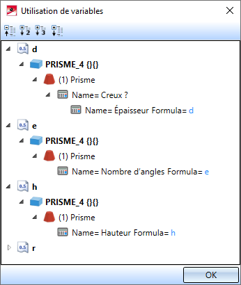 Cette fonction vous indique où sont utilisées les variables de l'élément/ensemble, par ex. :