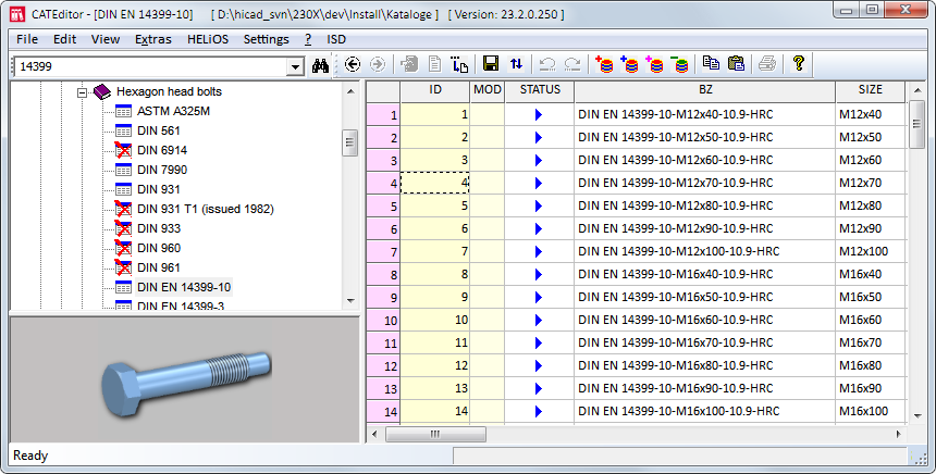 In the Catalogue Editor, enter the DIN standard that you want to transfer in the search field at the top left (e.g. 14399). Click on the symbol to start the search.
