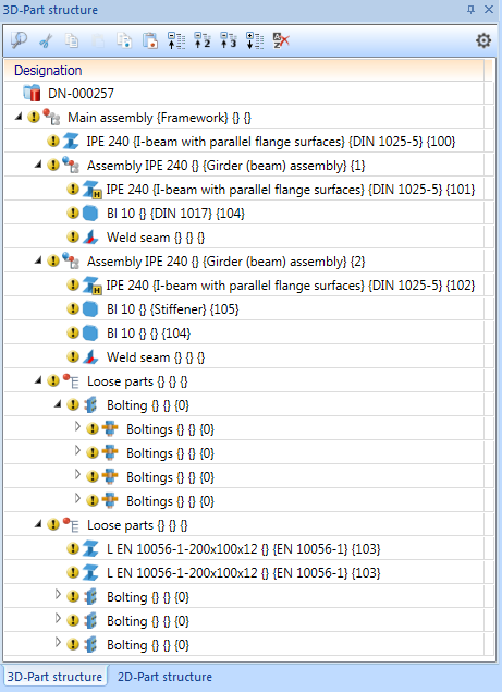 After confirming with OK, the parts and assemblies of the model drawing will be itemized immediately.