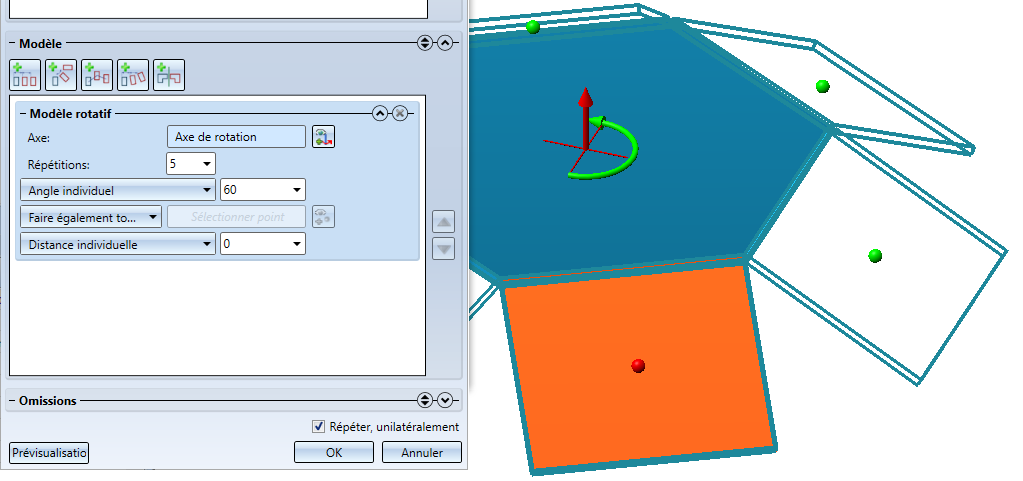 Axe de rotation Centre de la tôle de base, 5 répétitions, Angle individuel 60°, Distance individuelle 0