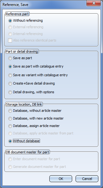 - The cuboid is now prepared for a saving to the element installation catalogue. Select the assembly Asbestos cement plate and choose the function Drawing > Save/Reference > Reference part, Save, Detail drawing. In the displayed dialogue window, choose the settings Without referencing, Save as part with catalogue entry and Without database.