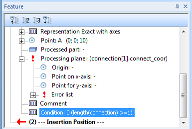 verbindung[1].connect_coor. This ensures that the processing plane will be placed onto the 1st intersection point of the connection. As the variant has currently not been inserted, this variable does not exist either, so that an error will be reported.