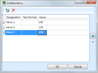 This ToolBox object defines an input field with editing options and a selection list, i.e. you can either enter a value in the field, or select a value from a selection list.