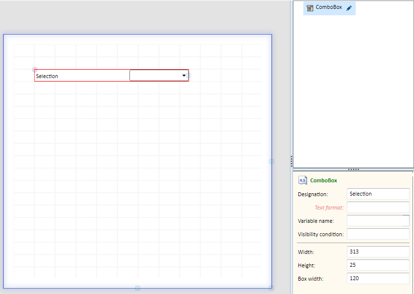 In contrast to the object EditBox, the entries of the selection box comprise two rows. The text of the second row is defined in the Description column.