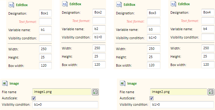 Let's assume that you want to create a user-specific dialogue for an installation element with the variables b1, b2, b3 and b4 of the type Number: