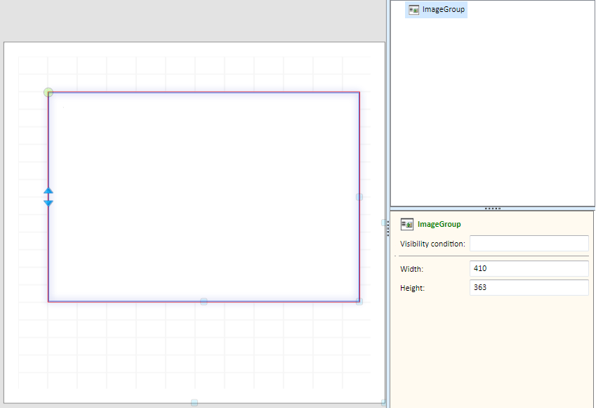 After inserting ImageGroup, there will initially only be an empty frame, which you can then fill with further GUI objects. When objects are dragged into the ImageGroup, they will be aligned in tabular form. The assigned objects are regarded as sub-objects of the ImageGroup.
