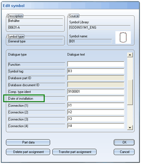 You can then, for example, use the Edit symbol function to assign text to this dialogue type for any symbol you want to insert into the P+ID.