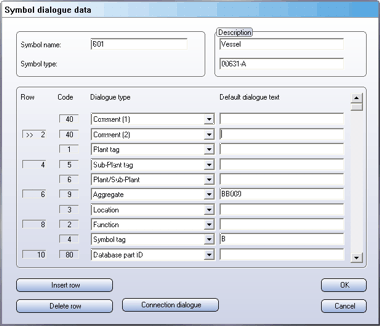 In the case of a newly created symbol, the mask is initially empty. Unassigned lines are indicated by dialogue type 0. As you do not generally start with an empty mask but open the data mask of an already loaded symbol, the data mask in the illustration below contains entries.