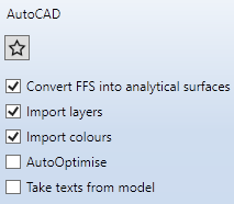 symbol in the dialogue window. You can find more information on favourites management in the in the Manage Favourites topic of the HiCAD Basics Help. You can specify which favourite is used as the default in the import dialogue in the Configuration Editor at Interfaces > Import.