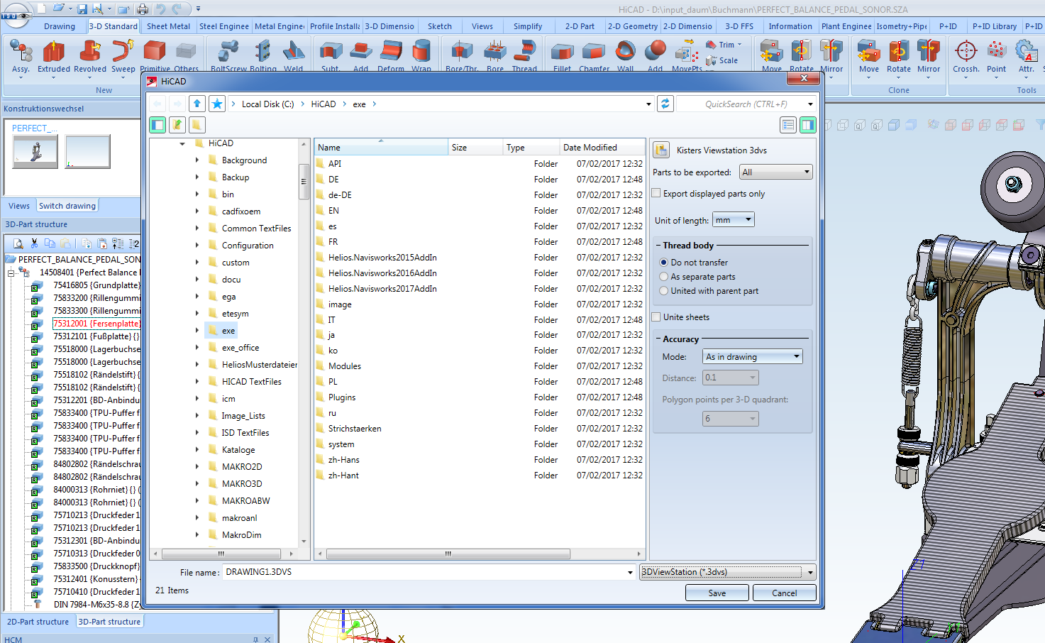 Kisters 3D ViewStation is also able to read HiCAD data formats (SZA and KRA).