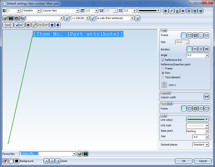 Beside Item number and Part No. you can additionally specify the number of decimal places for the written out result, if you have selected HiCAD attribute.
