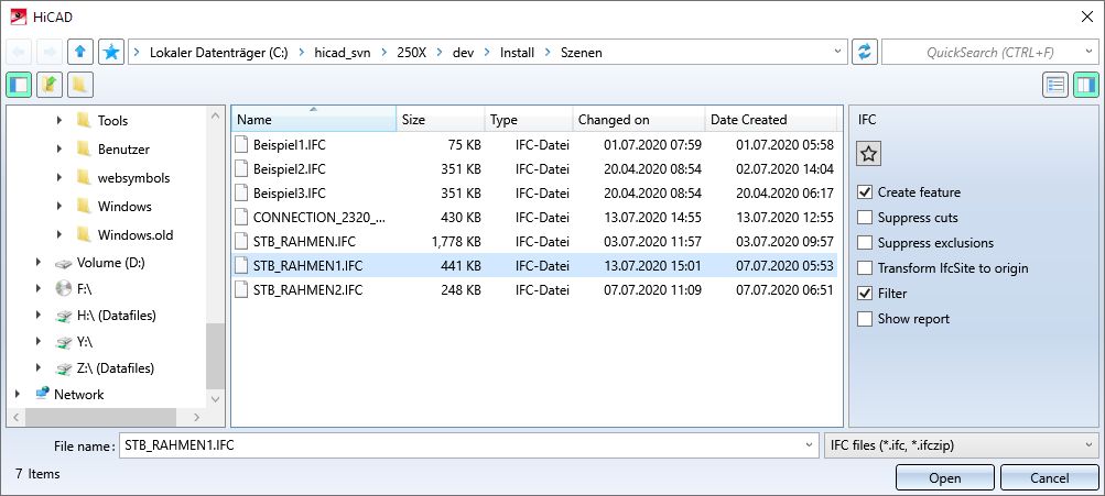 IFC files (IFC2x3 or IFC4) are opened in HiCAD by calling the function 3-D Import and then selecting the corresponding *.ifc or ifczip file.