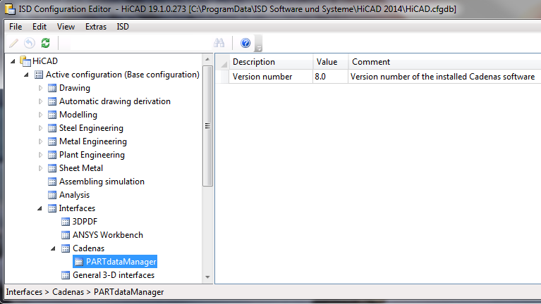 When inserting parts from the Cadenas PARTSolutions catalogues in HiCAD, the Cadenas attributes "Part No". and the designation will now be automatically assigned to the HiCAD part attributes $BB (Article number) and $01 (Designation 1). This assignment can be changed in the STD.XML file in the HiCAD SYS\CADENAS directory.