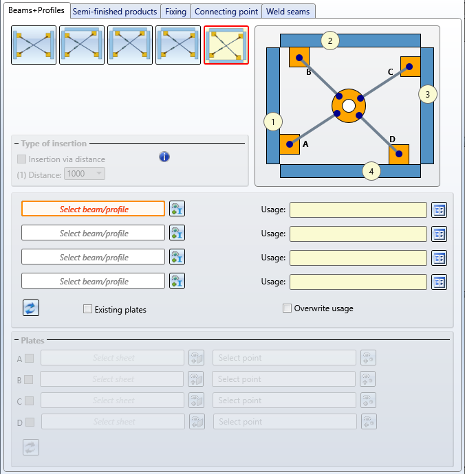 Additionally you have the possibility to specify the distance from the centre axis. This value determines the insertion point of the first plate at the first identified beam.