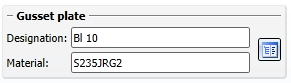 On the Semi-finished product sub-tab you specify the type of the gusset plate. Click the icon to directly select the semi-finished product from a standard part catalogue.