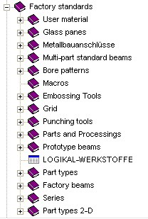 parts, beams+profiles, standard processings etc. delivered with HiCAD.