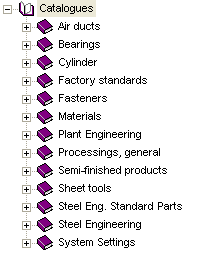 range of standard part groups, e.g. FASTENERS, SEMI-FINISHED