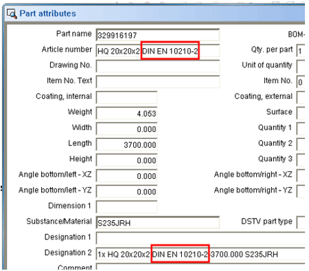 Let us assume that you do not want the DIN designation DIN EN 10210-2 to be displayed. To prevent this, you can change the BZ field in the Catalogue Editor accordingly: