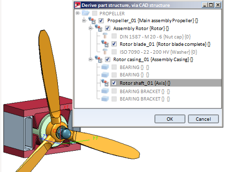 A dialogue window will be displayed, enabling you to specify which elements of the CAD structure are to be derived.