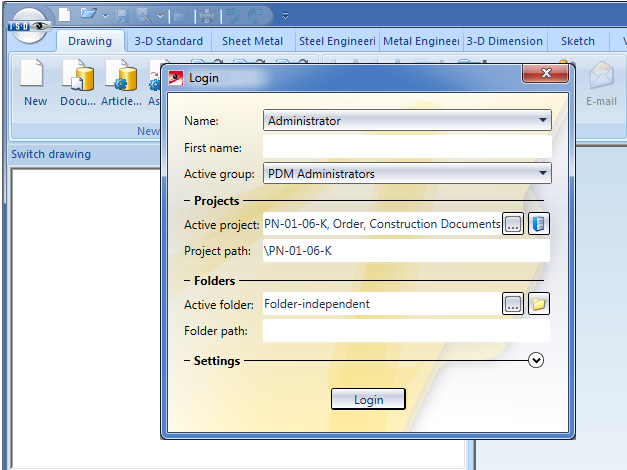 PDM Functions in HiCAD • Change Login User • Start and End HiCAD