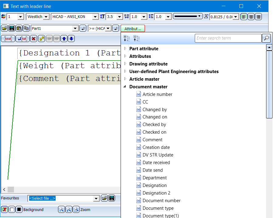 . Attributes marked in this way are listed in the selection window under Favourites.