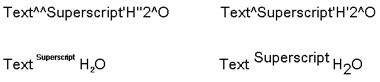 Both characters can occur several times in a text. This means that you can switch from a superscript or subscript back to normal position. The number of control characters influences the font size of the superscripted or subscripted text.