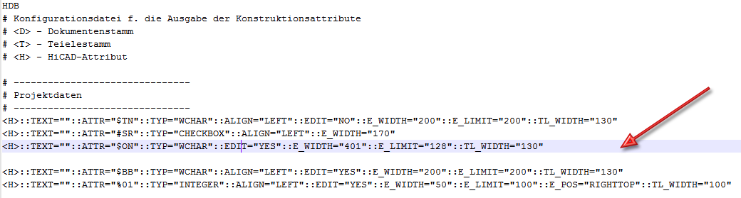 Complétez pour cela dans ces fichiers les entrées <H>::TEXT=""::ATTR="$BB"::TYP="WCHAR" et <H>::TEXT=""::ATTR="$TN"::TYP="WCHAR" par le texte ::EDIT="YES": <H>::TEXT=""::ATTR="$BB"::TYP="WCHAR"::EDIT="YES" <H>::TEXT=""::ATTR="$TN"::TYP="WCHAR"::EDIT="YES" Redémarrez ensuite HiCAD . Pour les ensembles, veuillez également prendre note de la description sous Numéros ID pour ensemble. |