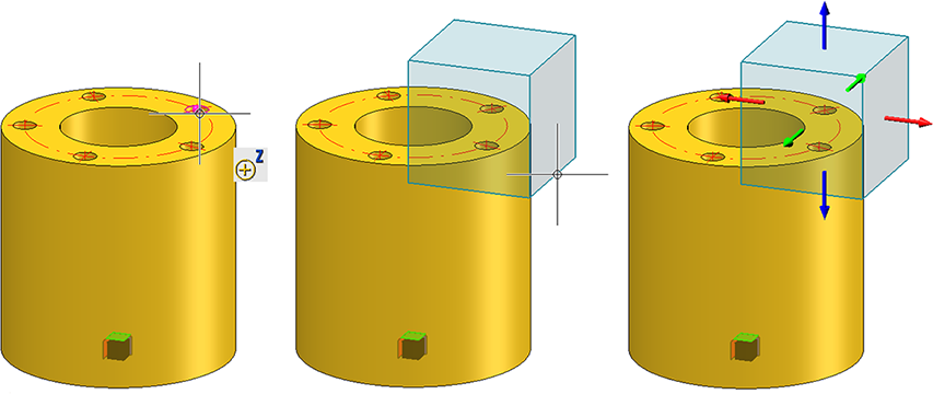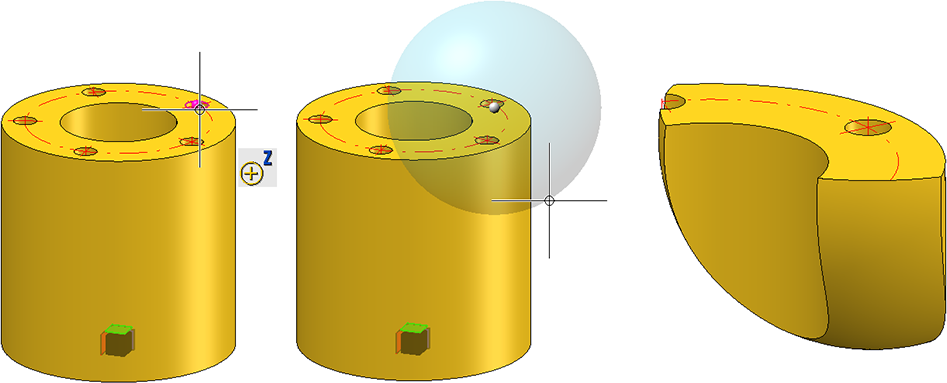 À l'aide de cette fonction, vous pouvez définir des vues de détail. La coupe du détail ne sera pas ici déterminée par une esquisse, mais en définissant un parallélépipède ou une sphère.