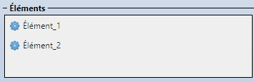 Si vous voulez supprimer des éléments de la liste des éléments, cliquez alors avec le bouton droit de la souris (BDS) sur l'élément puis sélectionnez la fonction Supprimer. Pour inscrire un nouvel élément dans la liste d'éléments, cliquez sur le symbole Sélectionner un élément , sélectionnez ensuite l'élément souhaité sur la scène ou dans l'ICN.