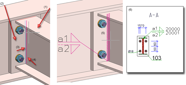 Identifiez tout d'abord l'élément de construction sur lequel la soudure sera effectuée, ensuite l'élément de construction qui sera soudé au premier. Les éléments identifiés seront répertoriés dans la liste des éléments de la fenêtre de dialogue.