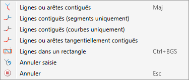 Lignes ou arêtes contiguës Cette fonction permet de sélectionner en une seule fois toutes les lignes contiguës à la ligne identifiée. Les lignes seront sélectionnées aussi longtemps que la sélection n'est pas ambiguë.