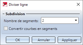 Après avoir lancé la fonction, indiquez tout d'abord le nombre de segments souhaité. Si les composants qui sont des courbes doivent être convertis en segments, cochez alors la case Convertir courbes en segments. La case n'a aucun effet sur les lignes droites.