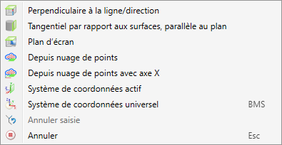 Si ce paramètre est activé, alors HiCAD demandera de définir un plan (de la même façon que pour la fonction Plan d'usinage. Ce plan concerne le plan horizontal / plan de vue en plan du système de coordonnées de l'élément. Pour définir le plan, plusieurs options s'offrent à vous :