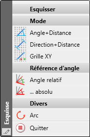 Il existe pour la technique d'esquisse divers modes de grille que vous pouvez sélectionner par un clic droit dans le menu contextuel. Par ailleurs, vous pouvez passer d'un affichage de l'angle absolu à relatif.
