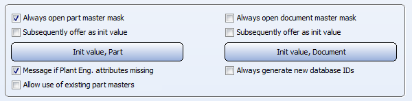 The Allow use of existing article masters checkbox is important if you want to use already existing article masters for the synchronization of part variants (VAA files) or fixed parts (PAA files) with the HELiOS database. Further information on this option can be found in the Utilisation of Existing Part Masters topic.