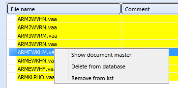 The file list can be edited by right-clicking an item of the list and selecting the desired function from the context menu: