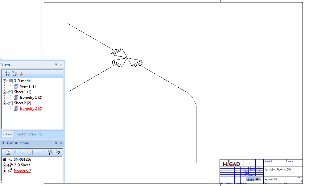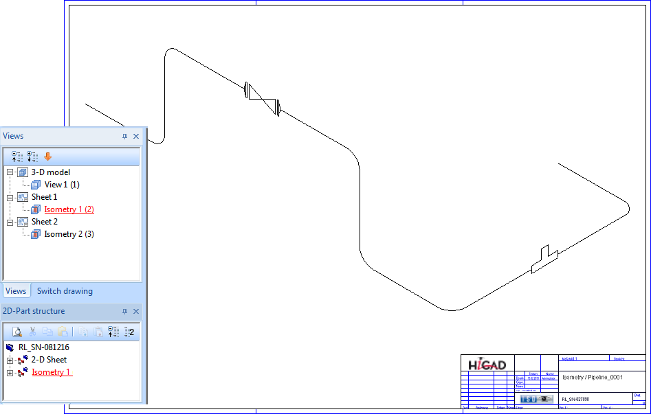 Isometries containing representations of entire pipelines or pipeline details can now be divided into two or more partial isometries. For each of these partial isometries an own drawing sheet will be created.