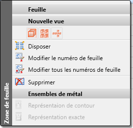 Pour modifier les zones de modélisation/de feuille ou les vues, vous pouvez également recourir aux fonctions du menu contextuel correspondant. Pour cela, cliquez avec le bouton droit de la souris sur l'entrée de ICN en question.